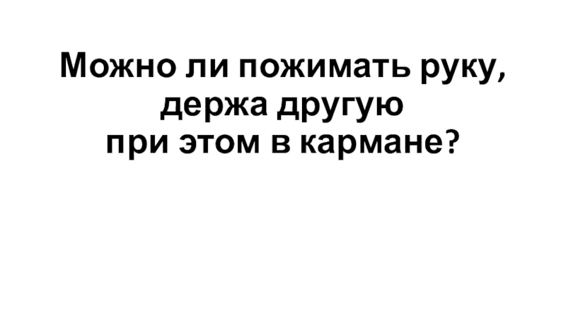 Слайд 10Можно ли пожимать руку, держа другую при этом в кармане?