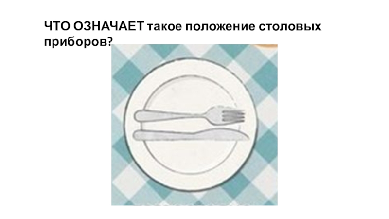 Слайд 34ЧТО ОЗНАЧАЕТ такое положение столовых приборов?