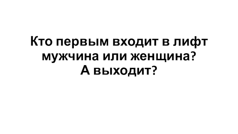 Слайд 12Кто первым входит в лифт мужчина или женщина? А выходит?