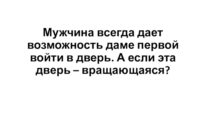 Слайд 11Мужчина всегда дает возможность даме первой войти в дверь. А если
