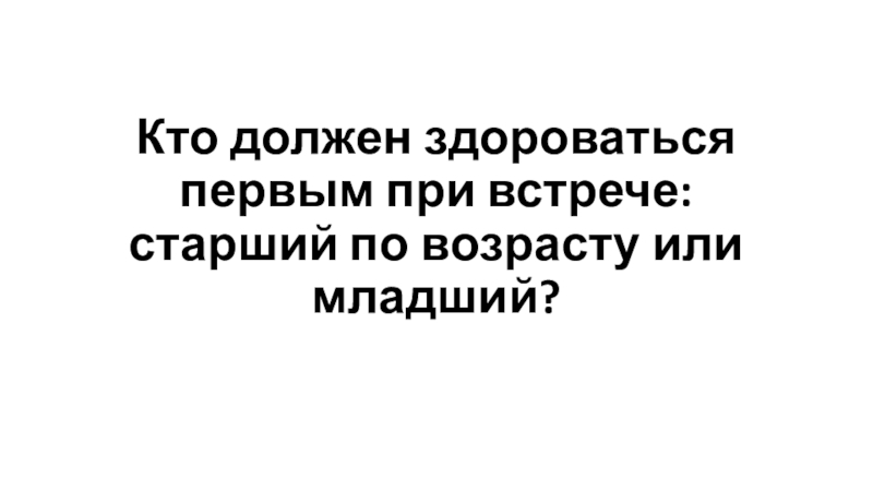 Слайд 3Кто должен здороваться первым при встрече: старший по возрасту или младший?