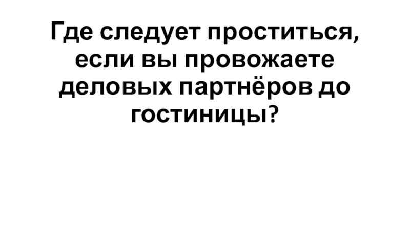 Слайд 20Где следует проститься, если вы провожаете деловых партнёров до гостиницы?