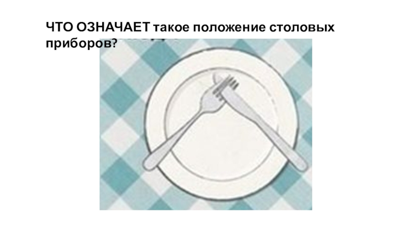 Слайд 32ЧТО ОЗНАЧАЕТ такое положение столовых приборов?