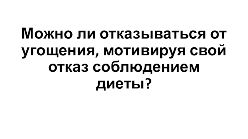 Слайд 36Можно ли отказываться от угощения, мотивируя свой отказ соблюдением диеты?