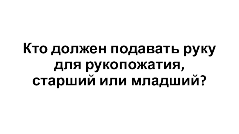 Слайд 4Кто должен подавать руку для рукопожатия, старший или младший?