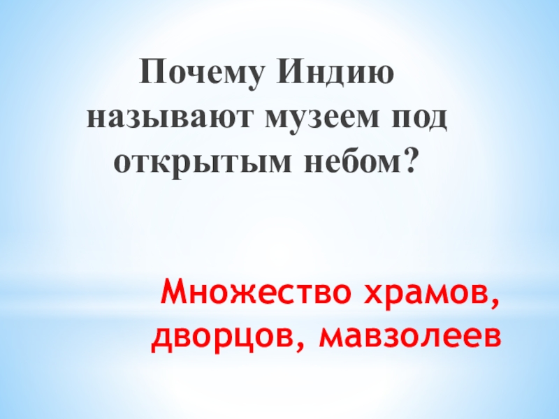 Множество храмов, дворцов, мавзолеевПочему Индию называют музеем под открытым небом?