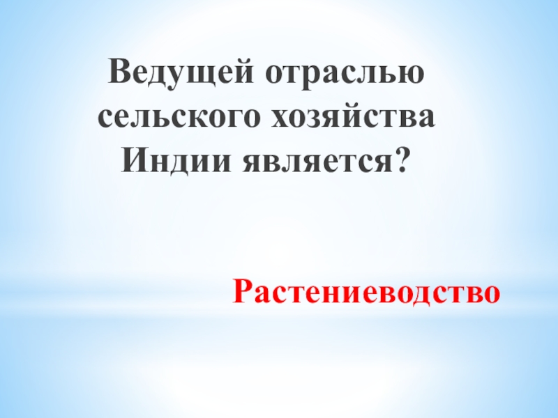 РастениеводствоВедущей отраслью сельского хозяйства Индии является?
