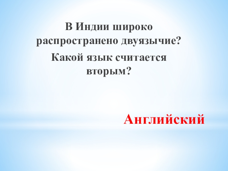 АнглийскийВ Индии широко распространено двуязычие? Какой язык считается вторым?
