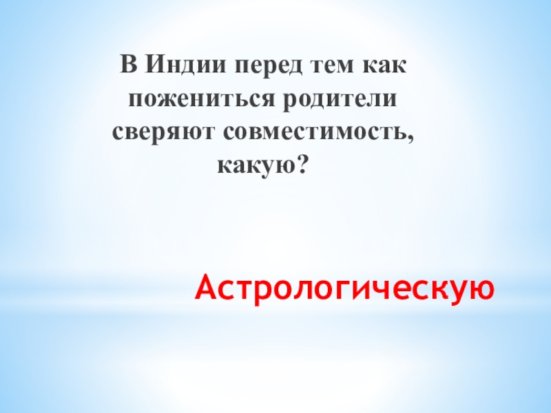 АстрологическуюВ Индии перед тем как пожениться родители сверяют совместимость, какую?