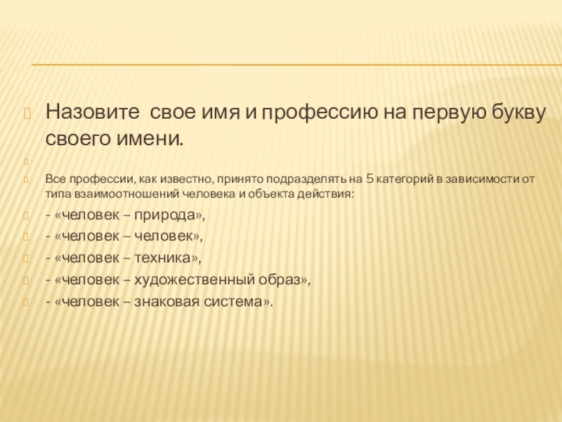 Слайд 3Назовите свое имя и профессию на первую букву своего имени.