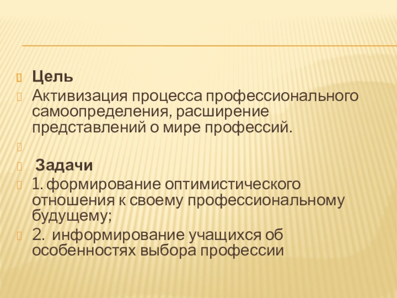 Активизация процесса профессионального самоопределения, расширение представлений о мире профессий.