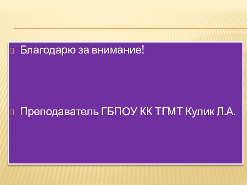 Преподаватель ГБПОУ КК ТГМТ Кулик Л.А.