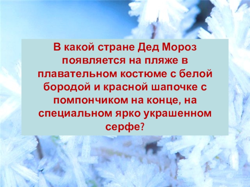 Слайд 3В какой стране Дед Мороз появляется на пляже в плавательном костюме