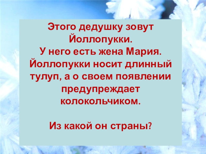 Слайд 5Этого дедушку зовут Йоллопукки.