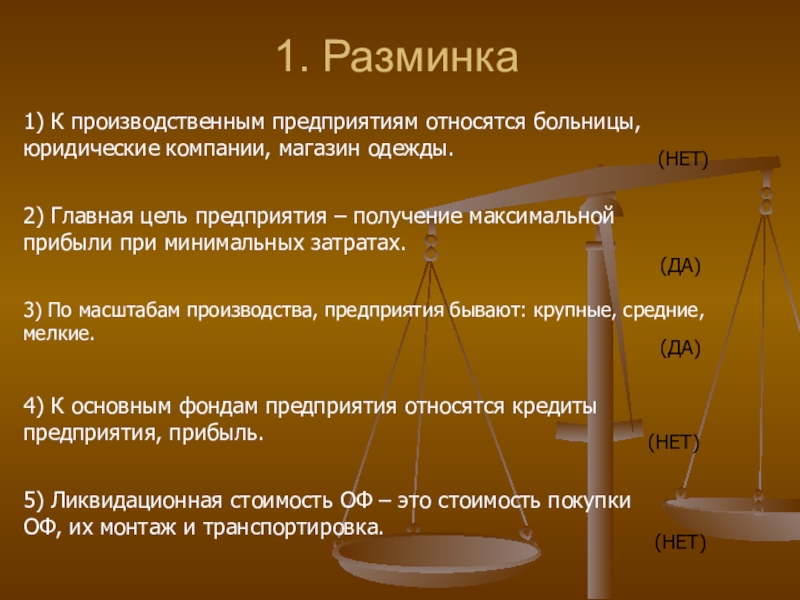 3) По масштабам производства, предприятия бывают: крупные, средние, мелкие.