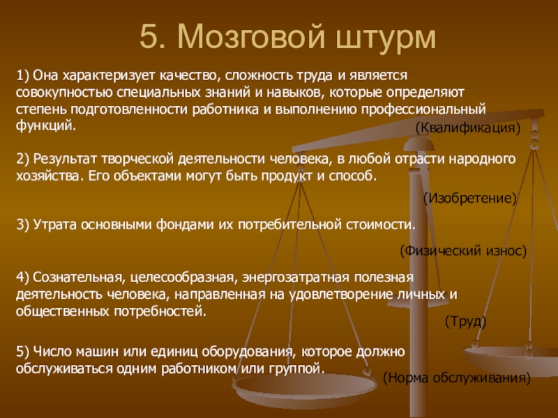 4) Сознательная, целесообразная, энергозатратная полезная деятельность человека, направленная на удовлетворение личных и общественных потребностей.