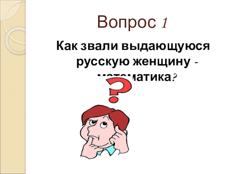 Вопрос 1Как звали выдающуюся русскую женщину - математика?