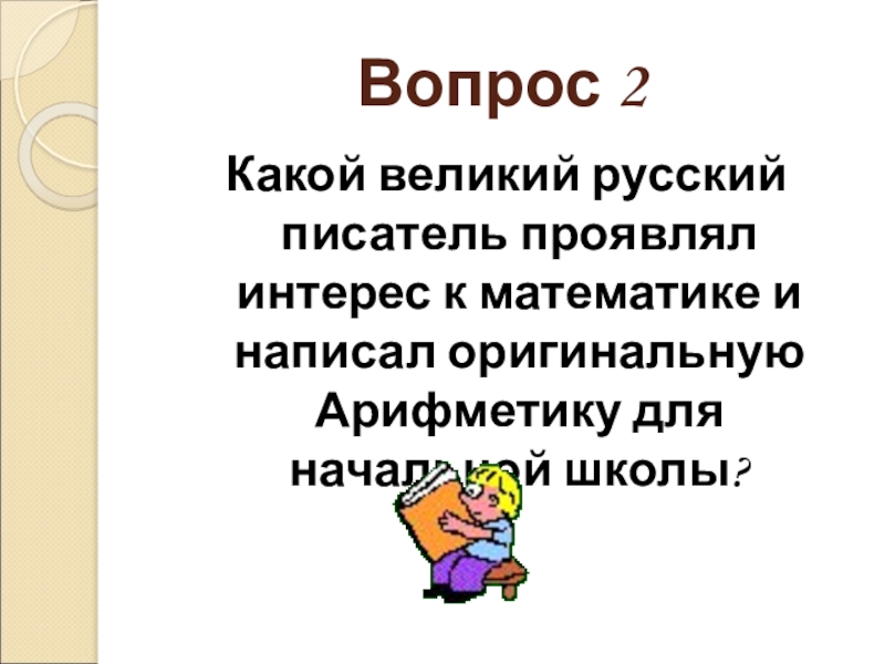 Вопрос 2Какой великий русский писатель проявлял интерес к математике и написал оригинальную Арифметику для начальной школы?