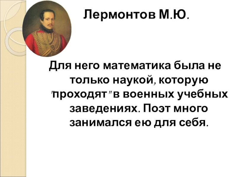 Лермонтов М.Ю. Для него математика была не только наукой, которую