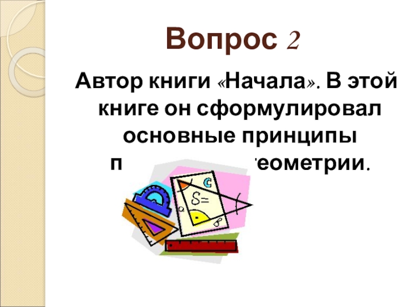Вопрос 2Автор книги «Начала». В этой книге он сформулировал основные принципы построения геометрии.