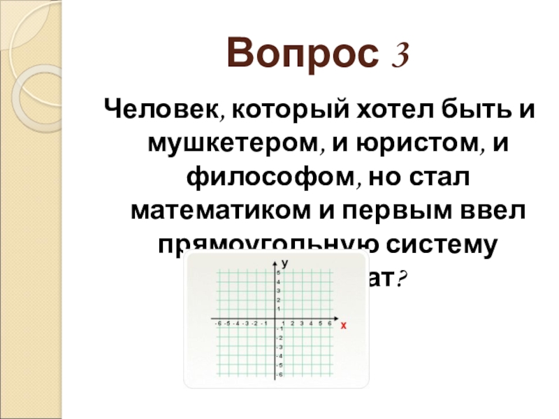Вопрос 3Человек, который хотел быть и мушкетером, и юристом, и философом, но стал математиком и первым ввел