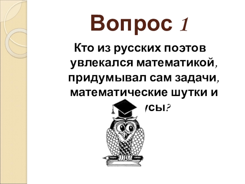 Вопрос 1Кто из русских поэтов увлекался математикой, придумывал сам задачи, математические шутки и фокусы?