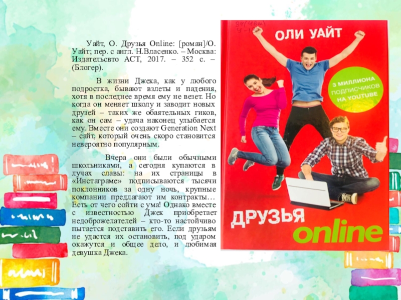 Это сайт презентаций, где можно хранить и обмениваться своими презентациями, докладами, проектами, шаблонами в формате PowerPoint с другими пользователями. Мы помогаем школьникам, студентам, учителям, преподавателям хранить и обмениваться учебными материалами.