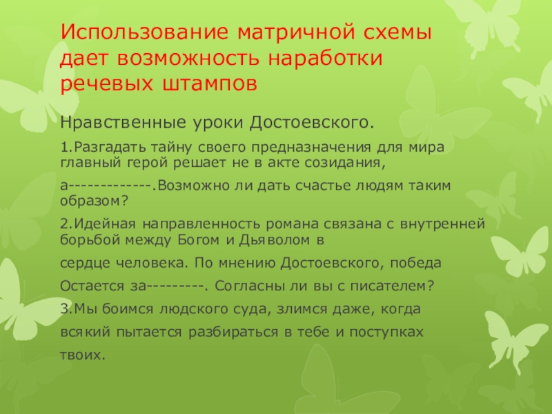 Слайд 11Использование матричной схемы дает возможность наработки речевых штампов