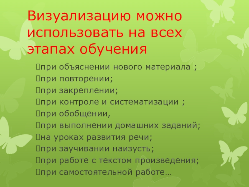 Слайд 4Визуализацию можно использовать на всех этапах обучения