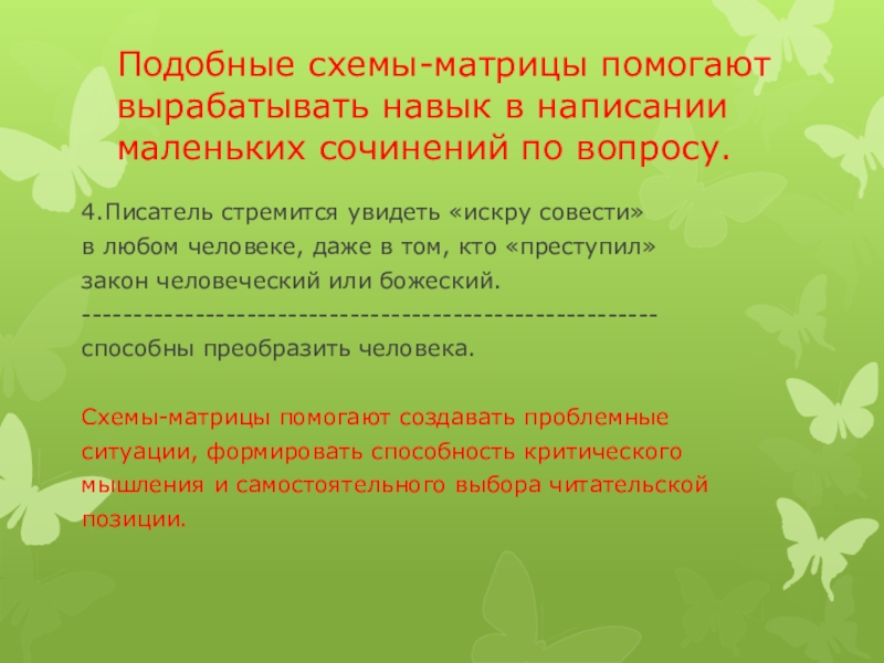 Слайд 14Подобные схемы-матрицы помогают вырабатывать навык в написании маленьких сочинений по вопросу.