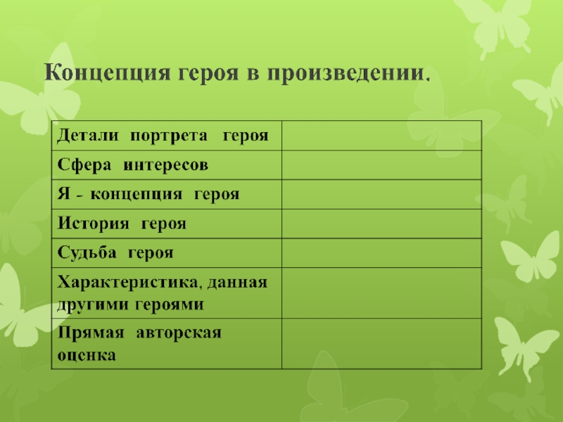 характеристика героев, сравнительная характеристика, видеоряд, демонстрационные программы);