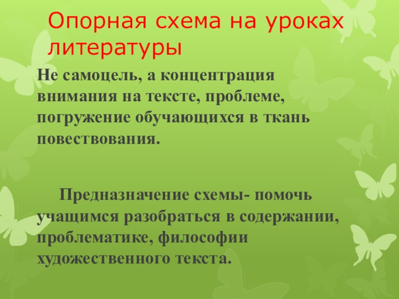 Предназначение схемы- помочь учащимся разобраться в содержании, проблематике, философии художественного текста.