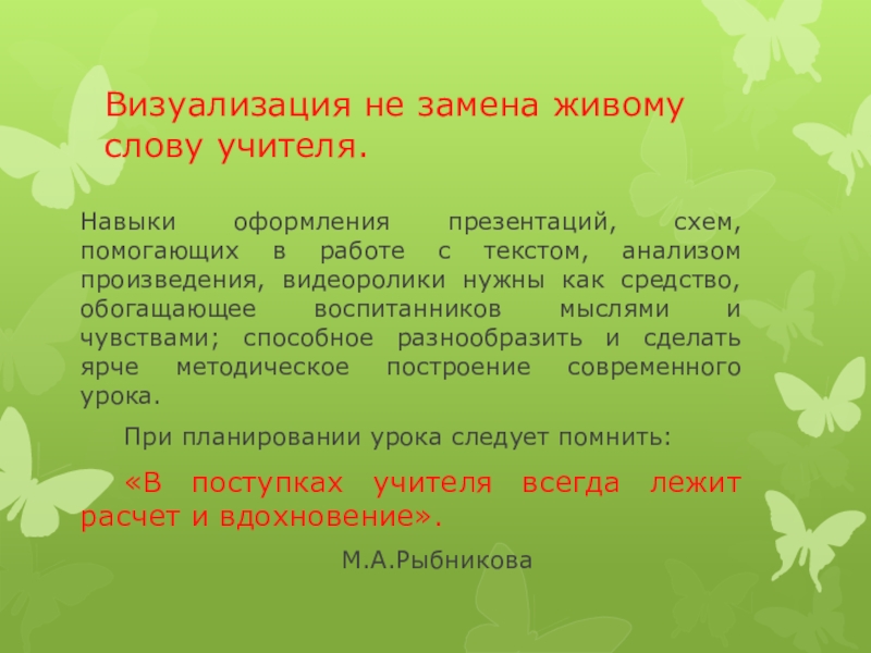 работе с текстом, анализом произведения, видеоролики нужны как средство, обогащающее воспитанников мыслями и чувствами; способное разнообразить и сделать ярче методическое построение современного урока.