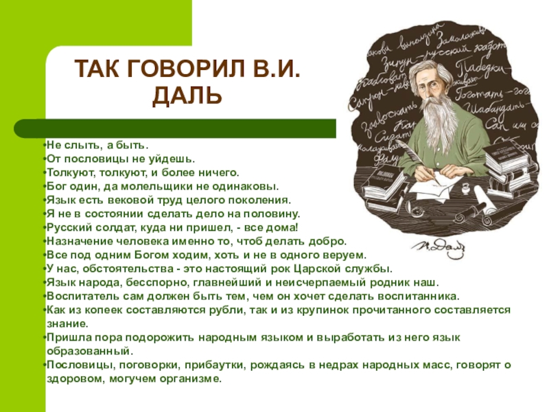 Слайд 26ТАК ГОВОРИЛ В.И.ДАЛЬ