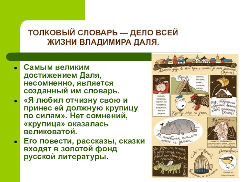 ТОЛКОВЫЙ СЛОВАРЬ — ДЕЛО ВСЕЙ ЖИЗНИ ВЛАДИМИРА ДАЛЯ.