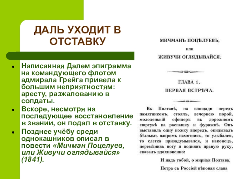 Написанная Далем эпиграмма на командующего флотом адмирала Грейга