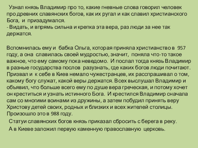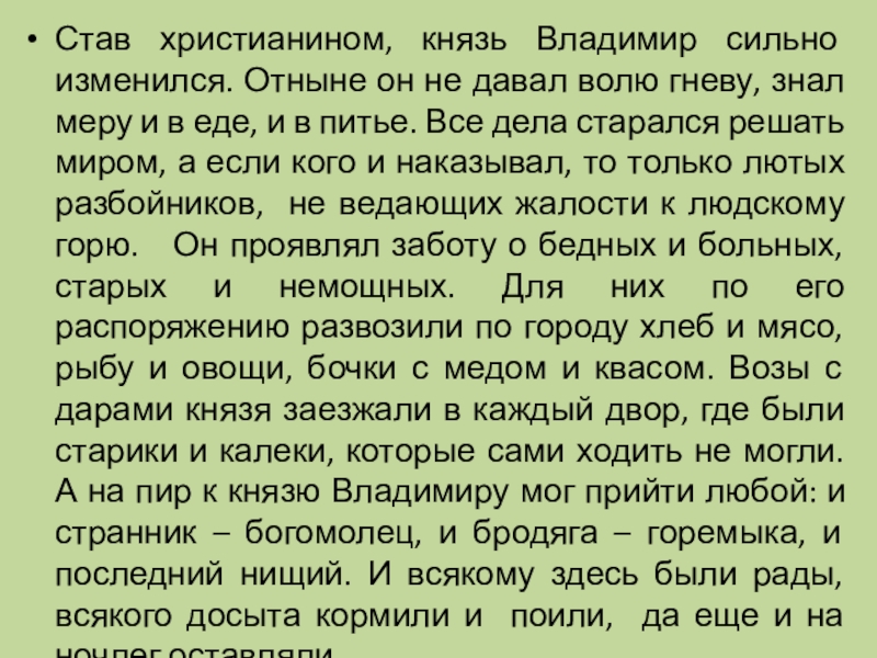 Слайд 17Став христианином, князь Владимир сильно изменился. Отныне он не давал волю