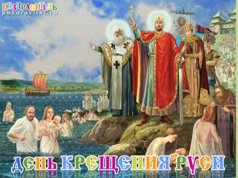 Вспомнилась ему и бабка Ольга, которая приняла христианство в 957 году, а она славилась своей мудростью, значит, поняла что-то такое важное, что ему самому пока неведомо. И послал тогда князь Владимир в разные государства послов разузнать, где каких богов люди почитают. Призвал и к себе в Киев немало чужестранцев, их расспрашивал о том, какому богу служат, какой веры держатся. Всех выслушал Владимир и объявил, что больше всего ему по душе вера греческая, и потому хочет он креститься и узнать истинного Бога. И крестился Владимир сначала сам со многими воинами из дружины, а затем побудил принять веру Христову детей своих, родных и близких и всех жителей столицы. Произошло это в 988 году.
