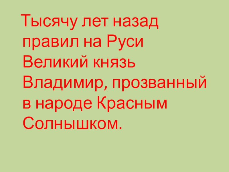 Слайд 3 Тысячу лет назад правил на Руси Великий князь Владимир, прозванный