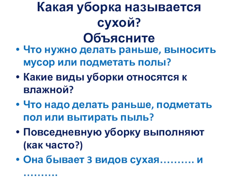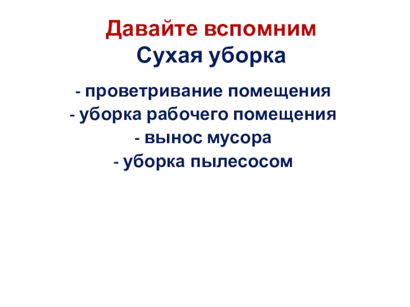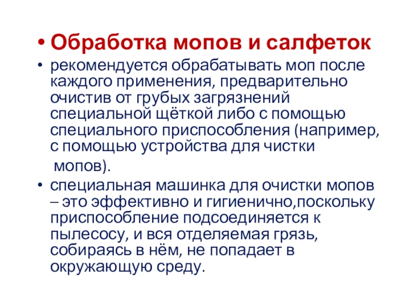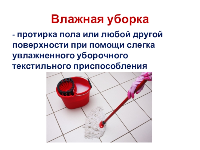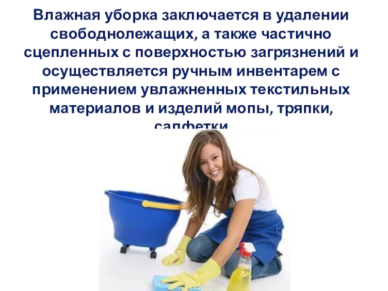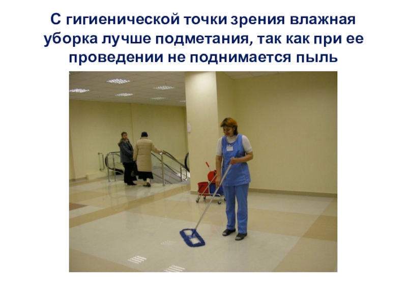 Слайд 9С гигиенической точки зрения влажная уборка лучше подметания, так как при