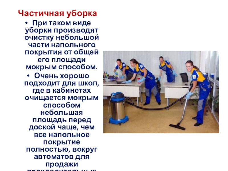 При таком виде уборки производят очистку небольшой части напольного покрытия