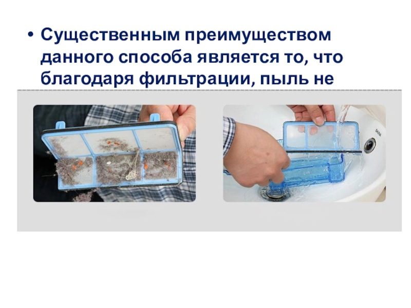 Слайд 12Существенным преимуществом данного способа является то, что благодаря фильтрации, пыль не
