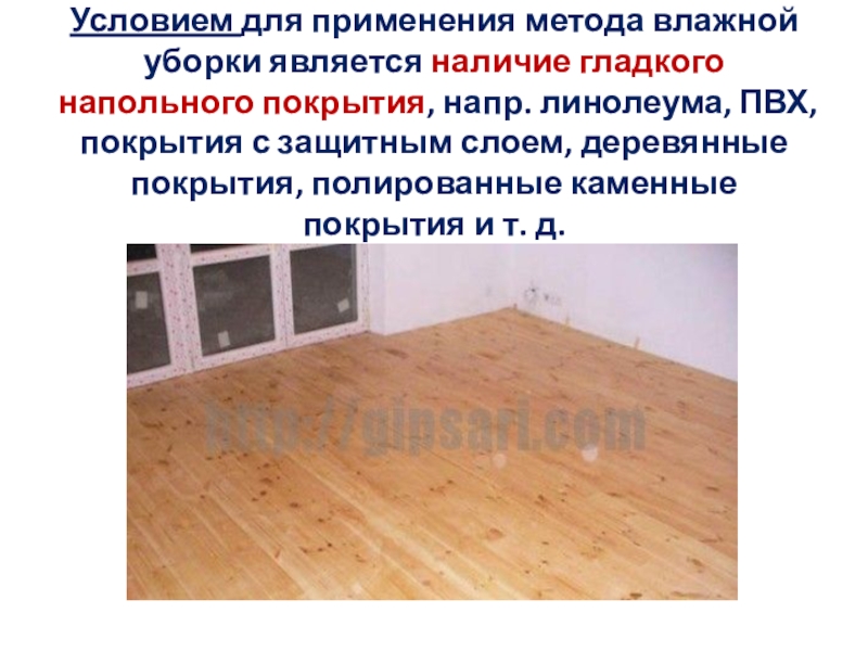Условием для применения метода влажной уборки является наличие гладкого напольного покрытия,