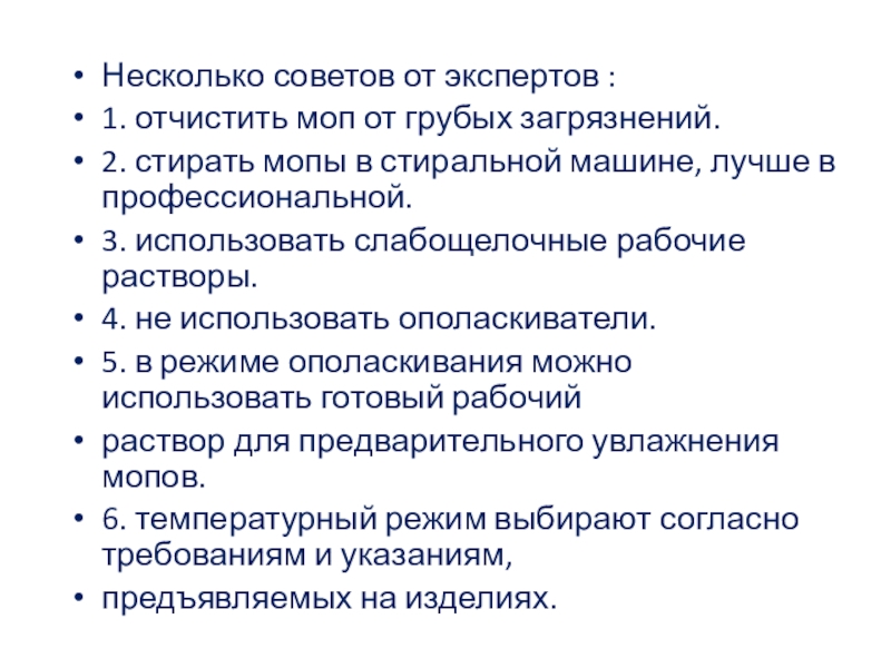 • Очень высокая степень загрязнения поверхности, при этом моп не промывается в процессе уборки,