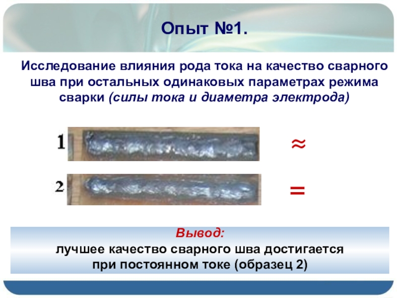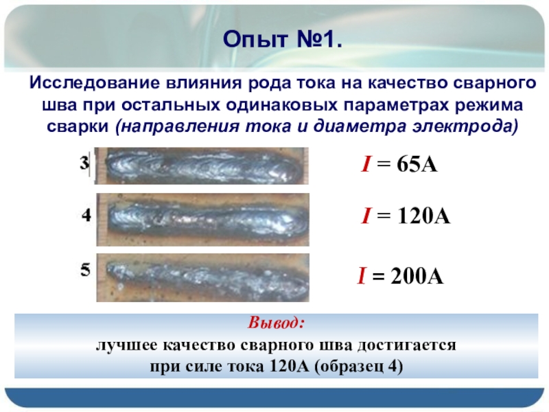 Исследование влияния рода тока на качество сварного шва при остальных одинаковых параметрах режима сварки (силы тока и диаметра электрода)