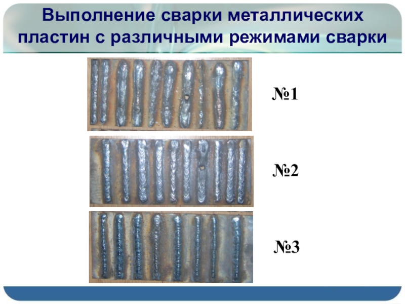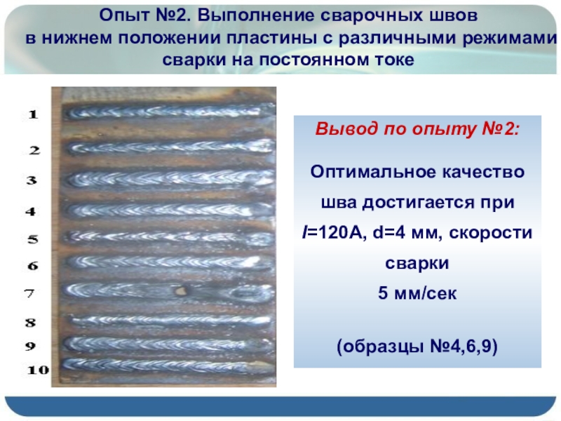 в нижнем положении пластины с различными режимами сварки на постоянном токе