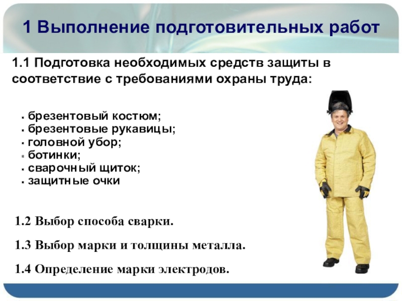 1.1 Подготовка необходимых средств защиты в соответствие с требованиями охраны труда: