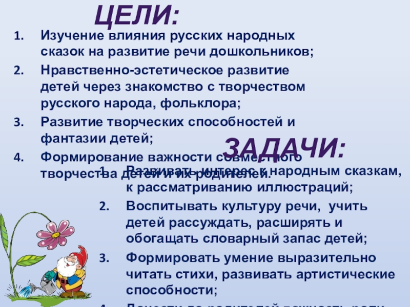 Донести до родителей важность роли сказки в развитии речи детей и вызвать желание участвовать в жизни группы.