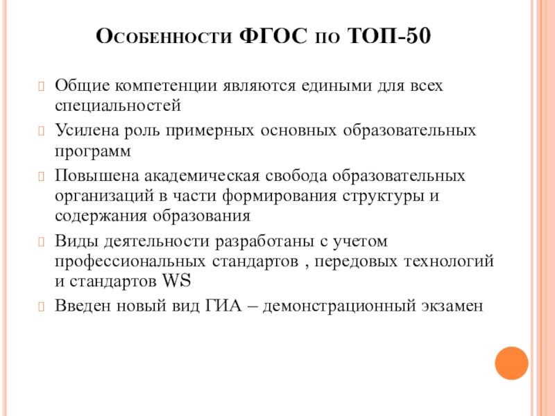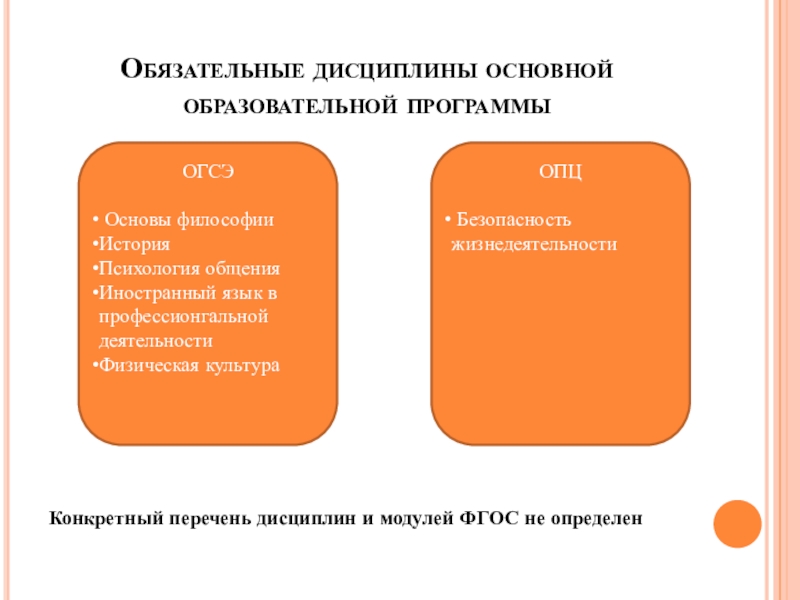 Конкретный перечень дисциплин и модулей ФГОС не определен