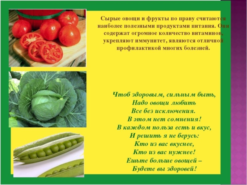 Презентация, доклад Внеклассное мероприятие Правильное питание